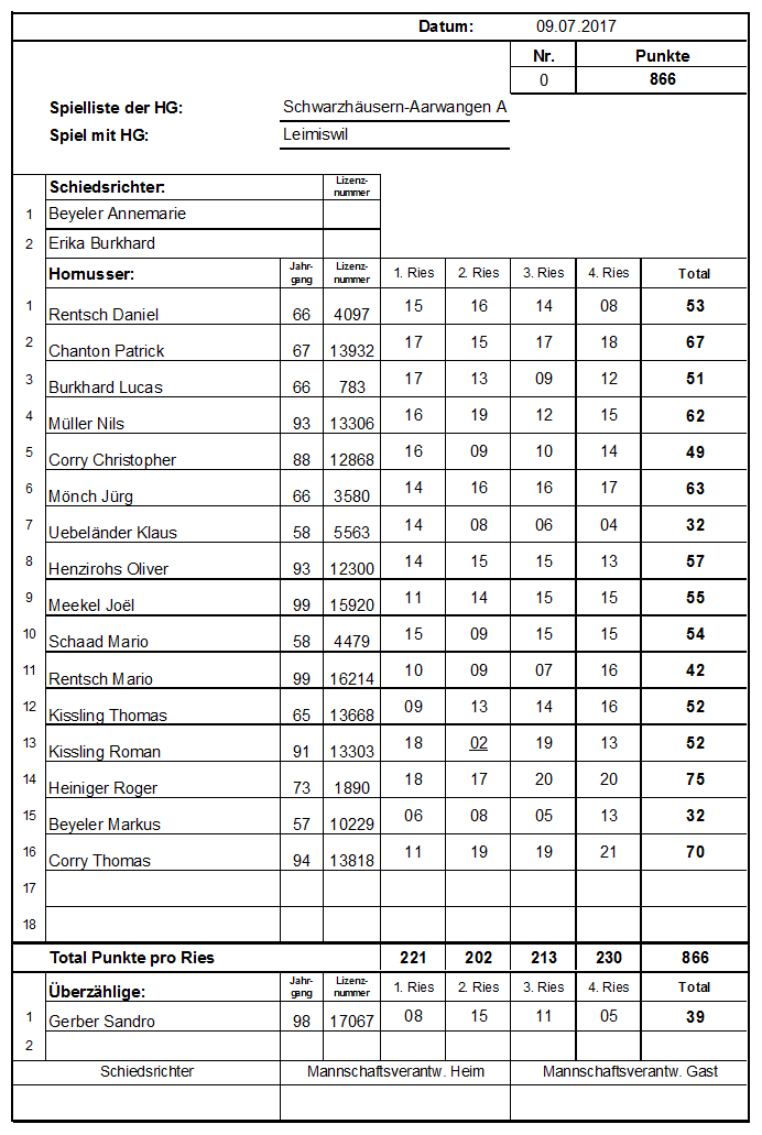 Meisterschaftsspiel vom 09.07.2017