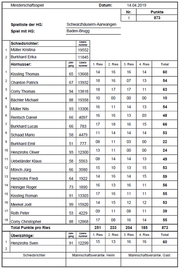 Meisterschaftsspiel vom 14.04.2019
