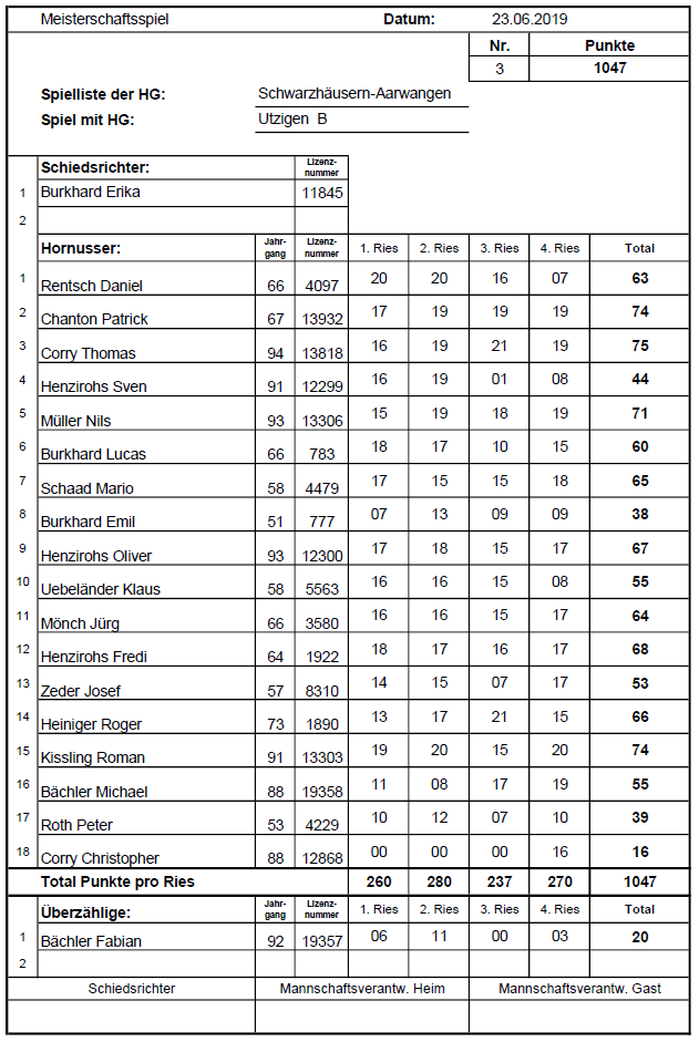 Meisterschaftsspiel vom 23.06.2019